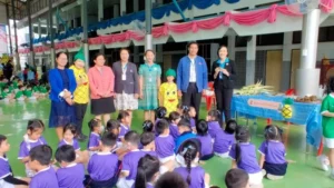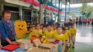 นายพิษณุ คามวาสี ผู้อำนวยการโรงเรียนอนุบาลเชียงราย ผู้บริหาร คณะครู นักเรียนสายชั้นปฐมวัย ร่วมกิจกรรมการเรียนรู้บูรณาการ การใช้โครงงานเป็นฐาน (PBL) เรื่อง การทำกระดาษใบสับปะรด โดยวิทยากรจากกลุ่มวิสาหกิจชุมชนกระดาษใบสับปะรด บ้านป่าซางวิวัฒน์ เพื่อส่งเสริมพัฒนาการ ทั้ง 4 ด้าน ผ่านกิจกรรมที่หลากหลาย  โดยเข้าฐานการเรียนรู้ ทั้งหมด 6 ฐาน ให้นักเรียนลงมือปฏิบัติเรียนรู้จากประสบการณ์ตรง  เน้นทักษะการคิด ให้ผู้เรียนสร้างองค์ความรู้ด้วยตนเอง ตามโครงการห้องเรียนคุณภาพ โรงเรียนมาตรฐานสากล เมื่อวันที่ 26 กุมภาพันธ์ พ.ศ. 2568 ณ โรงเรียนอนุบาลเชียงราย (พื้นที่ในเมือง)