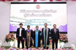 วันพฤหัสบดีที่ 27 กุมภาพันธ์ 2568 เวลา 09.00 น. นางปิยะพร พูลเพิ่ม ผู้อำนวยการวิทยาลัยการอาชีพเชียงราย ให้เกียรติเป็นประธาน พิธีมอบประกาศนียบัตรผู้สำเร็จการศึกษา ประจำปีการศึกษา 2567 โดยมี ผู้สำเร็จการศึกษา เข้ารับประกาศนียบัตร จำนวน 175 คน แบ่งออกเป็น ระดับประกาศนียบัตรวิชาชีพ (ปวช.) จำนวน 77 คน ระดับประกาศนียบัตรวิชาชีพชั้นสูง (ปวส.) จำนวน 98 คน โอกาสนี้ ผู้บริหาร, คณะครู, บุคลากรทางการศึกษา และผู้ปกครอง ร่วมแสดงความยินดี ณ ลานอเนกประสงค์ วิทยาลัยการอาชีพเชียงราย