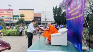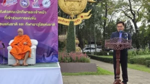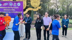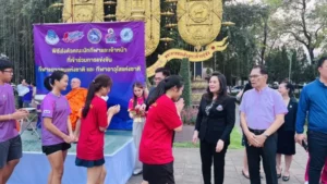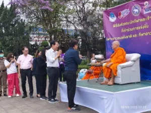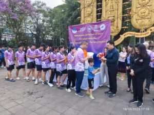 ในโอกาสนี้ พระครูขันติ พลาทร รองเจ้าคณะจังหวัดเชียงราย ได้ทำพิธีให้พร ประพรมน้ำพระพุทธมนต์ และเป็นกำลังใจแก่นักกีฬา ก่อนออกเดินทางไปแข่งขัน