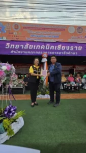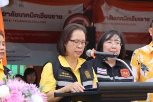 เมื่อวันศุกร์ที่ 11 เมษายน 2568 ณ บริเวณหน้าแขวงทางหลวงเชียงรายที่ 1 (กรมทางหลวง) ตำบลรอบเวียง อำเภอเมืองเชียงราย จังหวัดเชียงราย กระทรวงศึกษาธิการ ร่วมกับ กระทรวงคมนาคม โดยสำนักงานคณะกรรมการการอาชีวศึกษา กรมการขนส่งทางบก และ เครือข่ายภาคเอกชน ร่วมเปิด “ศูนย์อาชีวะ-ขนส่ง อาสาร่วมด้วยช่วยประชาชน เทศกาลสงกรานต์ 2568” โดยมี ดร.อรพิน ดวงแก้ว ผู้อำนวยการสำนักงานอาชีวศึกษาจังหวัดเชียงราย เป็นประธานในพิธีเปิด พร้อมด้วยผู้บริหาร ครู บุคลากรทางการศึกษา นักเรียน นักศึกษา จากสถานศึกษาสังกัดอาชีวศึกษาจังหวัดเชียงราย สื่อมวลชน และภาคีเครือข่ายภาคเอกชน เข้าร่วม
