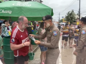 โดย พ.ต.ท.ธนวินท์ ไเ้ทำการประชุมและชี้แจงข้อสั่งการของผู้บังคับบัญชา พร้อมกับทำการปล่อยแถวข้าราชการตำรวจในสังกัด เพื่อออกปฏิบัติหน้าที่ดูแลรักษาความปลอดภัย และได้แจกจ่ายซองกันน้ำสำหรับโทรศัพท์มือถือ ออกเดินตรวจดูแลรักษาความปลอดภัยในชีวิตและทรัพย์สินให้กับประชาชนและนักท่องเที่ยว ในบริเวณจุดเล่นน้ำสงกรานต์ถนนสันโค้งน้อย อ.เมือง จ.เชียงราย โดยได้พบปะกับประชาชนและนักท่องเที่ยวที่มาเล่นน้ำในเทศกาลสงกรานต์อย่างใกล้ชิด และได้ประชาสัมพันธ์สายด่วน 1155 หากต้องการความช่วยเหลือได้ตลอด 24 ชั่วโมง