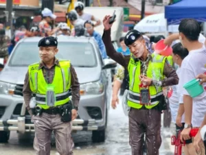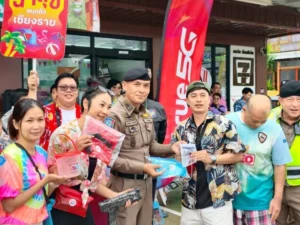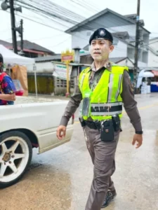 โดย พ.ต.ท.ธนวินท์ ไเ้ทำการประชุมและชี้แจงข้อสั่งการของผู้บังคับบัญชา พร้อมกับทำการปล่อยแถวข้าราชการตำรวจในสังกัด เพื่อออกปฏิบัติหน้าที่ดูแลรักษาความปลอดภัย และได้แจกจ่ายซองกันน้ำสำหรับโทรศัพท์มือถือ ออกเดินตรวจดูแลรักษาความปลอดภัยในชีวิตและทรัพย์สินให้กับประชาชนและนักท่องเที่ยว ในบริเวณจุดเล่นน้ำสงกรานต์ถนนสันโค้งน้อย อ.เมือง จ.เชียงราย โดยได้พบปะกับประชาชนและนักท่องเที่ยวที่มาเล่นน้ำในเทศกาลสงกรานต์อย่างใกล้ชิด และได้ประชาสัมพันธ์สายด่วน 1155 หากต้องการความช่วยเหลือได้ตลอด 24 ชั่วโมง