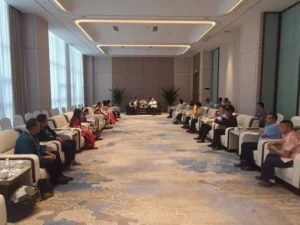คณะได้เข้าร่วมประชุมหารือกับ นายเฉิน ย่าฉง ผู้นำชุมชนไทลื้อ หมู่บ้านหัวนาเพื่อแลกเปลี่ยนข้อมูลด้านตลาดสินค้า และแนวทางในการขยายช่องทางการจำหน่ายผลิตภัณฑ์จากจังหวัดเชียงราย โดยมุ่งเน้นไปที่การยกระดับภาพลักษณ์ของสินค้าที่มีศักยภาพ อาทิ ผลิตภัณฑ์เกษตรแปรรูป งานหัตถกรรม สินค้าชุมชนที่สะท้อนอัตลักษณ์วัฒนธรรมล้านนา กำหนดแผนเปิดร้านค้าในหมู่บ้านหัวนา และในสนามบิน YUNNAN พร้อมทั้งหารือแนวทางการดำเนินการด้านเอกสารส่งออกและมาตรฐานสินค้า (ตามข้อกำหนด FDA จีน) คาดว่าการเจรจาดังกล่าวคาดว่าจะนำไปสู่การขยายตลาดสินค้าเชียงรายในประเทศจีน เสริมสร้างภาพลักษณ์ของสินค้าเชียงรายในระดับสากล และเป็นแนวทางสู่ความร่วมมือทางเศรษฐกิจระหว่างพื้นที่อย่างยั่งยืน