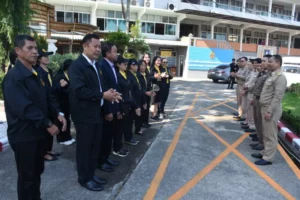 สำหรับพิธีเปิดความร่วมมือและปฏิบัติการตรวจร่วม นักเรียนปลอดภัย ห่างไกลบุหรี่ไฟฟ้าและยาเสพติด จัดโดยกระทรวงศึกษาธิการ ร่วมกระทรวงมหาดไทยและสำนักงานตำรวจแห่งชาติ สำนักงานป้องกันและปราบปรามยาเสพติด โดยมีพล.ต.อ. เพิ่มพูน ชิดชอบ รัฐมนตรีว่าการกระทรวงศึกษาธิการ นายอรรษิษฐ์ สัมพันธรัตน์ ปลัดกระทรวงมหาดไทย และพล.ต.อ.อัคราเดช พิมลศรี ที่ปรึกษาพิเศษ สำนักงานตำรวจแห่งชาติ ร่วมปล่อยขบวนความร่วมมือและปฏิบัติการร่วม บริเวณหน้ากระทรวงศึกษาธิการ กรุงเทพมหานคร โดยมี ผู้ว่าราชการจังหวัดหรือรองผู้ว่าราชการจังหวัด ผู้อำนวยการสำนักงานเขตพื้นที่การศึกษา บังคับการตำรวจภูธรจังหวัดหรือผู้แทน ศึกษาธิการจังหวัด ผู้อำนวยการสำนักงานอาชีวศึกษาจังหวัด ผู้อำนวยการสำนักงานเขตพื้นที่การศึกษาในจังหวัด ทั้ง 77 จังหวัดร่วมรับชมผ่านช่องทาง OBEC Channel ก่อนดำเนินการประชุมการขับเคลื่อนโครงการนักเรียนปลอดภัย ห่างไกลบุหรี่ไฟฟ้าและยาเสพติด ในระดับจังหวัด ในทั้งประเทศ ใช้สถานที่ของสำนักงานเขตพื้นที่การศึกษาประถมศึกษา เขต 1 ของทุกจังหวัดเป็นเจ้าภาพในการจัด ให้มีการจัดทำแผนที่จุดเสี่ยงทั้งภายในและนอกสถานศึกษา โดยคำนึงถึงวันและช่วงเวลาที่อาจเกิดความไม่ปลอดภัยขึ้นกับนักเรียน แผนการออกตรวจร่วมเฝ้าระวังเหตุและสร้างความปลอดภัยให้แก่นักเรียนระหว่างสถานศึกษากับเจ้าหน้าที่ตำรวจในพื้นที่ และให้ผู้บริหารสถานศึกษาและพนักงานเจ้าหน้าที่ส่งเสริมความประพฤตินักเรียนและนักศึกษา (พสน.) ดำเนินการร่วมกับเจ้าหน้าที่ตำรวจ เจ้าหน้าที่ฝ่ายปกครองและภาคีเครือข่ายในพื้นที่ เพื่อออกตรวจพื้นที่จุดเสี่ยงจัดให้มีช่องทางการสื่อสารและส่งต่อข้อมูลที่เกี่ยวข้องกับความปลอดภัยนักเรียนร่วมกันระหว่างสถานศึกษาและสถานีตำรวจ ผ่านช่องทางออนไลน์กลุ่มหรือช่องทางอื่นๆ พร้อมประชาสัมพันธ์การขับเคลื่อนโครงการนักเรียนปลอดภัย ห่างไกลบุหรี่ไฟฟ้าและยาเสพติด และออกตรวจพื้นที่จุดเสี่ยงเชิงรุก เพื่อให้เกิดผลในเชิงจิตวิทยาในการป้องกันเหตุความไม่ปลอดภัยที่จะเกิดขึ้นแก่นักเรียนทั้งภายในและนอกสถานศึกษาต่อไป
