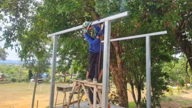 การก่อสร้างฐานพระพุทธรูปได้เริ่มต้นขึ้นแล้ว โดยทีมงานในชุมชนได้ร่วมแรงร่วมใจกันทำงานอย่างขยันขันแข็ง ภาพที่เห็นในขณะนี้คือโครงสร้างเหล็กที่กำลังถูกประกอบขึ้นอย่างมั่นคง ท่ามกลางต้นไม้ใหญ่และบรรยากาศอันร่มรื่นของโรงเรียน ธงชาติไทยที่โบกสะบัดอยู่บนเสาธงด้านหน้าโรงเรียนเป็นสัญลักษณ์ของความภาคภูมิใจของทุกคนในชุมชน แต่ถึงแม้ว่าการก่อสร้างจะเริ่มต้นไปแล้ว งบประมาณสำหรับโครงการนี้ยังคงขาดแคลนอยู่บางส่วน ซึ่งอาจส่งผลให้การดำเนินงานต้องหยุดชะงักลงหากไม่ได้รับการสนับสนุนเพิ่มเติม