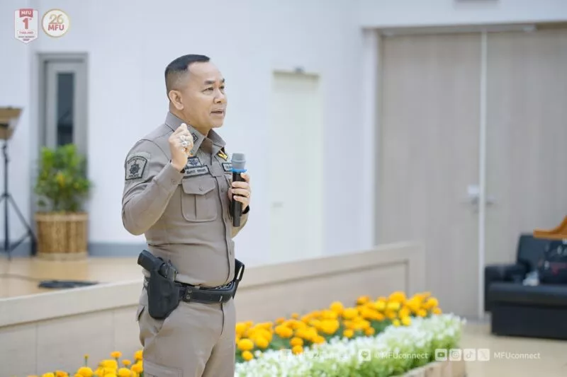 เมื่อวันพฤหัสบดีที่ 15 พฤษภาคม 2568 มหาวิทยาลัยแม่ฟ้าหลวง (มฟล.) โดยส่วนนโยบายและแผน ร่วมกับ สถานีตำรวจภูธรเมืองเชียงราย จ.เชียงราย จัดโครงการอบรมเชิงปฏิบัติการเพื่อลดความเสี่ยงด้านสถานการณ์ฉุกเฉิน-เหตุกราดยิงในมหาวิทยาลัย ภายใต้หลัก “หนี ซ่อน สู้” รวมทั้งการรับมืออาชญากรรมทางเทคโนโลยี โดยมี ผศ. ดร.มัชฌิมา นราดิศร อธิการบดี เป็นประธานกล่าวเปิดกิจกรรม นางสาวพัชรภร ปอนสืบ รักษาการแทนหัวหน้าส่วนนโยบายและแผน กล่าวรายงาน ได้รับเกียรติจากวิทยากร พันตำรวจตรีอิทธิพัทธ์ ศรีวิชัย สารวัตรป้องกันปราบปรามอาชญากรรม ชุมชนสัมพันธ์ ร้อยตำรวจตรีสมควร จอดนอก รองสารวัตร ป้องกันปราบปรามอาชญากรรม และผู้ช่วยวิทยากร จ่าสิบตำรวจเสกสรรค์ อุ่นเรือน ผู้บังคับหมู่งานป้องกันปราบปราม จ่าสิบตำรวจดิษฐ์ศร แสงศรีจันทร์ ผู้บังคับหมู่งานป้องกันปราบปรามทีมงาน จาก สภ.เมืองเชียงราย นอกจากนี้ยังมีคณะผู้บริหาร คณบดี หัวหน้าหน่วยงาน และบุคลากรมหาวิทยาลัยเข้าร่วมการอบรมกว่า 150 คน ณ ห้องประชุมประดู่แดง 1 อาคารพลเอกสำเภา ชูศรี (E4) มฟล.