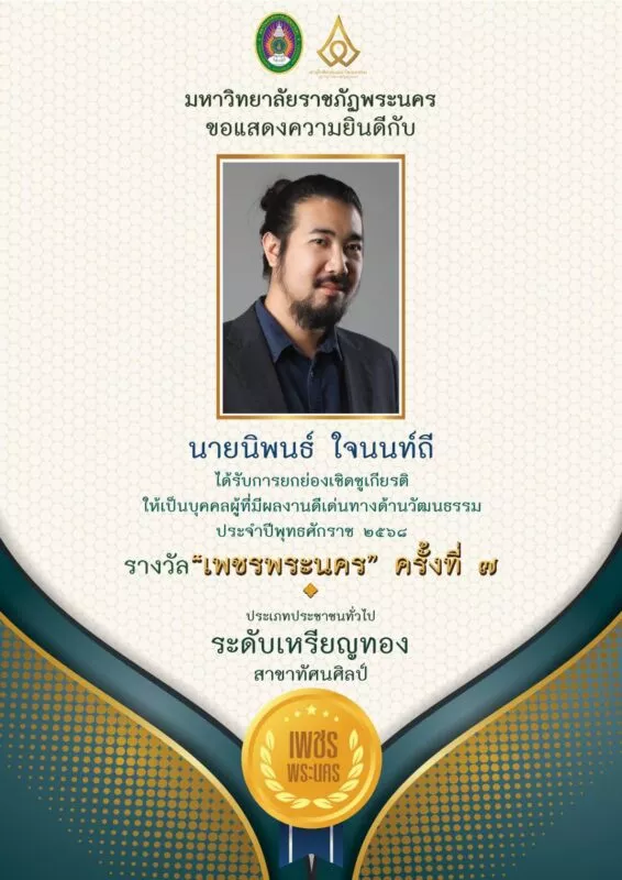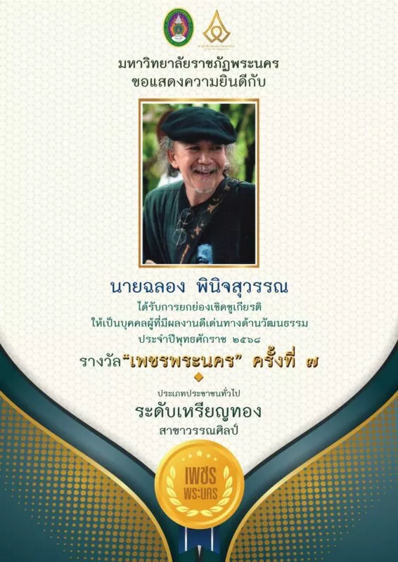ขอแสดงความยินดีกับ ๔ ศิลปินเชียงราย ผู้มีผลงานดีเด่นทางวัฒนธรรม ได้รับยกย่องเชิดชูเกียรติ รางวัล “เพชรพระนคร” ประจำปี พ.ศ.๒๕๖๘ โดย สำนักศิลปะและวัฒนธรรม มหาวิทยาลัยราชภัฏพระนคร ได้แก่