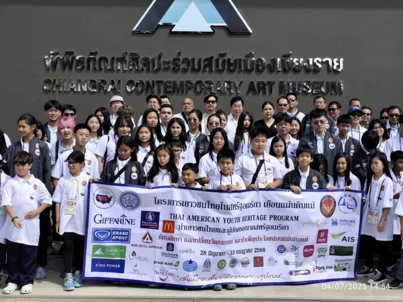 วันที่ 4 กรกฎาคม 2568 โครงการเยาวชนไทยในสหรัฐอเมริกา เยือนแผ่นดินแม่ ครั้งที่ 14 เริ่มวันที่ 28 มิถุนายน 2568 ถึงวันที่ 13 กรกฎาคม 2568 จังหวัดเชียงรายเป็นอีกหนึ่งอยู่ในแผนงานที่มาเยือน โครงการเยาวชนไทยในสหรัฐอเมริกา เยือนแผ่นดินแม่ THAI AMERICAN YOUTH HERITAGE PROGRAM นำเยาวชนไทยและผู้ปกครองจากสหรัฐอเมริกา ทัศนศึกษา แลกเปลี่ยนวัฒนธรรม และบำเพ็ญประโยชน์บนแผ่นดินแม่ มาเยือนจังหวัดเชียงรายในครั้งนี้ ได้ไป อาทิเช่นวัดห้วยปลากั้ง วัดพระธาตุผาเงา ไปชมการเรียนการสอนโรงเรียนที่อำเภอแม่จัน พิพิธภัณฑ์ศิลปะร่วมสมัยเชียงราย และอีกหลายที่ คณะเยาวชนไทยในสหรัฐอเมริกา เยือนแผ่นดินแม่ ครั้งที่ 14 นำทีมโดย