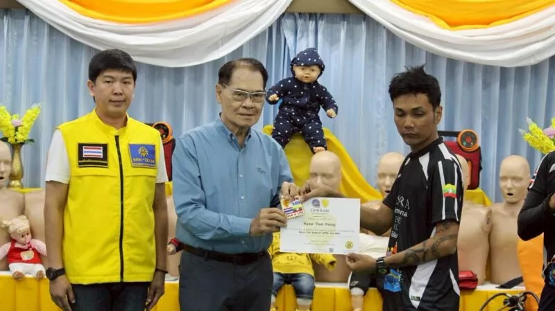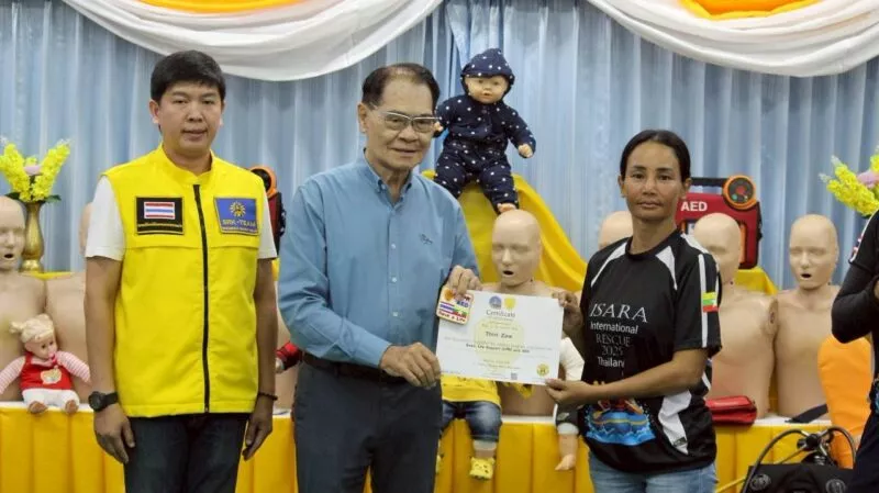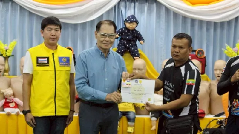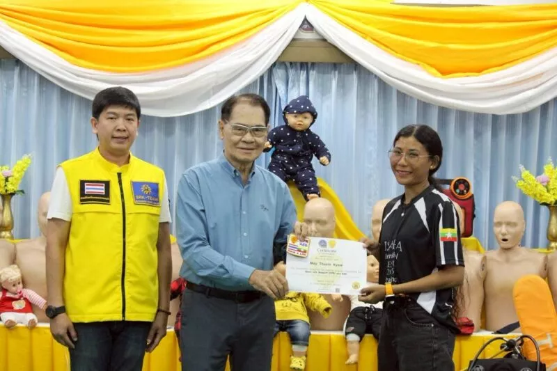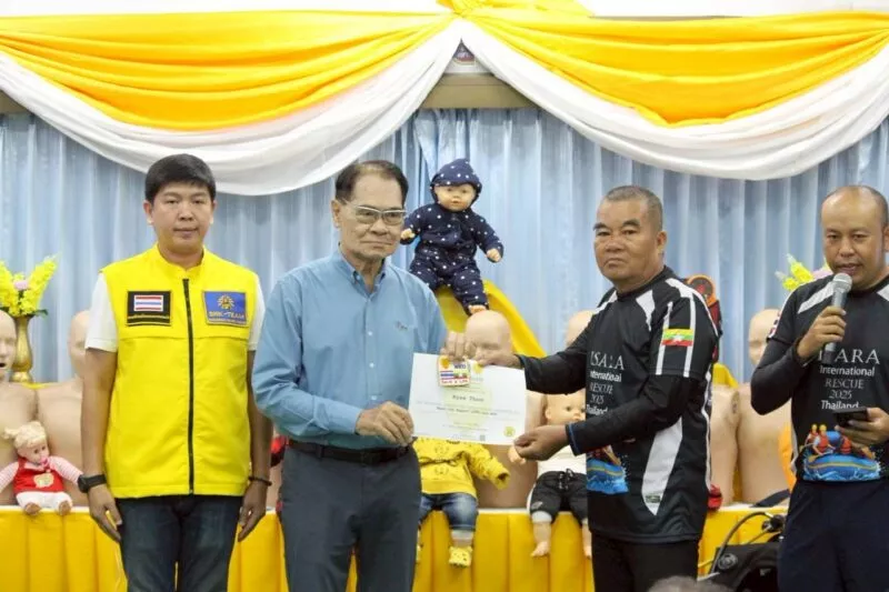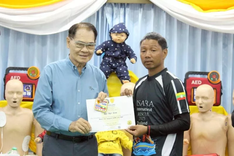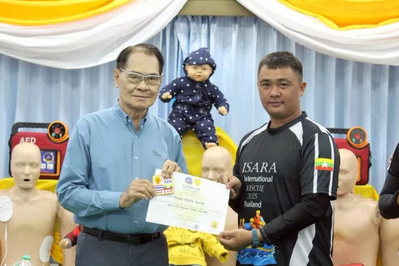 นายโชติศิริ ดารายน นายกสมาคมศิริกรณ์เชียงรายบรรเทาสาธารณภัย มอบประกาศนียบัตร ให้แก่ กู้ภัย Myanmar Rescue Group 4 หน่วยงาน โดยมีผู้เข้าร่วมรับการอบรม 25 นาย เข้ารับฝึกอบรม การกู้ชีพขั้นพื้นฐาน CPR&AED จาก ศูนย์การเรียนรู้ ด้านการแพทย์ฉุกเฉินสมาคมศิริกรณ์เชียงรายบรรเทาสาธารณภัย เมื่อวันที่ 9 กรกฎาคม 2568 ตั้งแต่เวลา 10:00 – 19:00 น. ภายใต้การอำนวยการสอน ของ นายชูเกียรติ จันทบูรณ์ (ศิริกรณ์ 01) ณ ห้องประชุมสมาคมศิริกรณ์เชียงรายบรรเทาสาธารณภัย