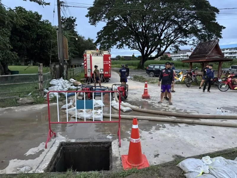ในการลงพื้นที่ดังกล่าว ได้มีการนำกระสอบทรายไปปิดกั้นช่องระบายน้ำลงสู่แม่น้ำกกเพื่อป้องกันการไหลย้อนกลับ พร้อมติดตั้งเครื่องสูบน้ำเร่งระบายน้ำจากภายในชุมชนออกสู่แม่น้ำกกโดยเร็วที่สุด โดยมีการจัดเวรเฝ้าระวังพื้นที่ตลอด 24 ชั่วโมง เพื่อให้สามารถรับมือสถานการณ์ได้ทันท่วงที
