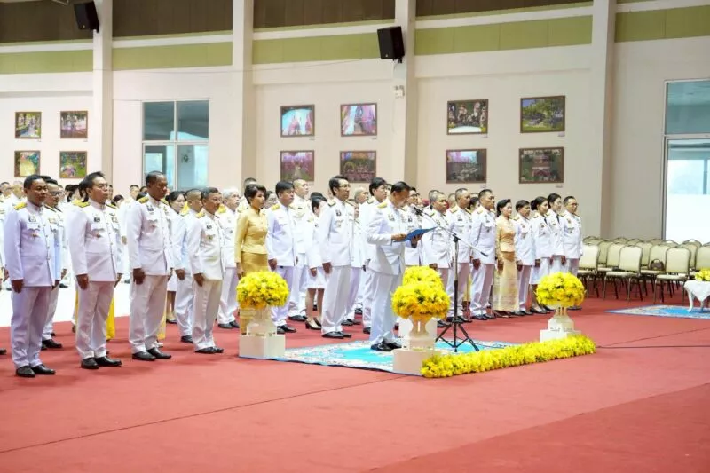 ภายในพิธีประกอบด้วย พิธีทำบุญตักบาตรพระสงฆ์ พิธีถวายราชสดุดีและพิธีถวายสัตย์ปฏิญาณ เพื่อเป็นข้าราชการที่ดีและเป็นพลังของแผ่นดิน และพิธีเจริญพระพุทธมนต์ ตามลำดับ