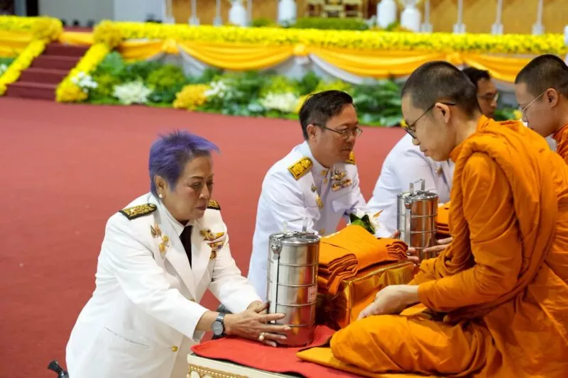 ในโอกาสสำคัญ พระราชวชิรคณี เจ้าคณะจังหวัดเชียงราย เจ้าอาวาสวัดพระธาตุผาเงา เป็นประธานฝ่ายสงฆ์ และมีรองผู้ว่าราชการจังหวัดเชียงราย ผู้พิพากษาหัวหน้าศาลจังหวัดเชียงราย ผู้บัญชาการมณฑลทหารบกที่ ๓๗ ผู้บังคับการตรวจภูธรจังหวัดเชียงราย นางสินีนาฏ ทองสุข นายกเหล่ากาชาดจังหวัดเชียงราย และประธานแม่บ้านมหาดไทยจังหวัดเชียงราย ตลอดจนหัวหน้าส่วนราชการ ข้าราชการ ศาล ทหาร ตำรวจ และประชาชนชาวจังหวัดเชียงราย ทุกหมู่เหล่า ร่วมเจริญพระพุทธมนต์และทำบุญตักบาตร ข้าวสาร อาหารแห้ง แด่พระสงฆ์และสามเณร จำนวน ๗๔ รูป เพื่อถวายเป็นพระราชกุศล และน้อมสำนึกในพระมหากรุณาธิคุณที่มีต่อปวงชนชาวไทย