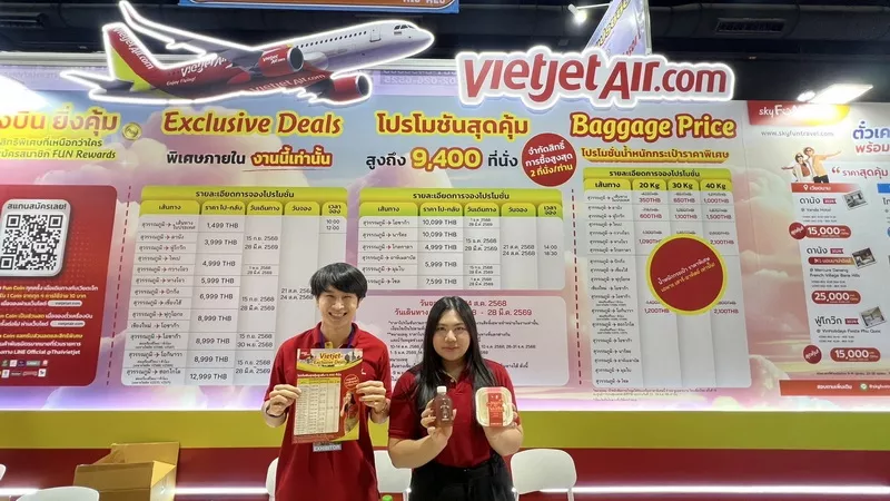 ภายในงาน เวียตเจ็ทไทยแลนด์นำเสนอดีลพิเศษ “Vietjet Exclusive Deals” มอบบัตรโดยสารภายในประเทศแบบไป – กลับ เริ่มต้นเพียง 1,499 บาท และบัตรโดยสารระหว่างประเทศแบบไป – กลับ เริ่มต้นเพียง 3,999 บาท (ราคารวมภาษีและค่าธรรมเนียม) รวมดีลพิเศษทั้งหมดกว่า 9,400 ที่นั่ง ครอบคลุมเส้นทางยอดนิยม รวมถึงบัตรโดยสารแบบไป – กลับ ราคาเริ่มต้นเพียง 4,999 บาท สู่จีนและไทเป และ 8,999 บาท สู่ ญี่ปุ่น นอกจากนี้ ยังมีโปรโมชั่นน้ำหนักสัมภาระราคาพิเศษสำหรับผู้โดยสารที่ถือบัตรโดยสารอยู่แล้ว เฉพาะในงานนี้เท่านั้น