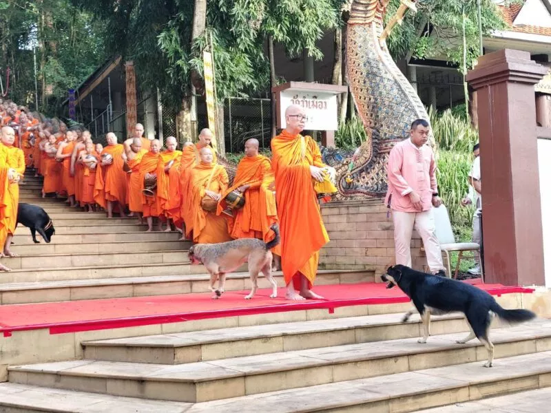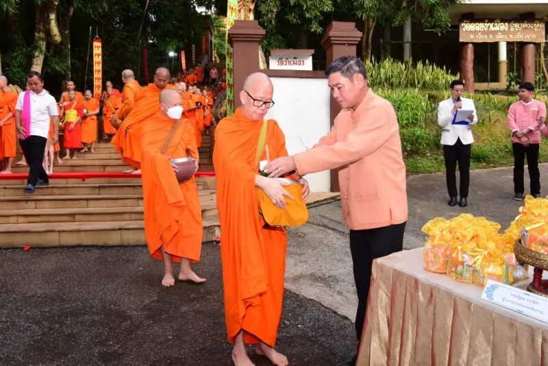 โดยมี นายรัฐพล นราดิศร ผู้ว่าราชการจังหวัดเชียงราย เป็นประธานฝ่ายฆราวาส พร้อมด้วยรองผู้ว่าราชการจังหวัดเชียงราย หัวหน้าส่วนราชการ และได้รับความเมตตาจาก พระรัตนมุนี ที่ปรึกษาเจ้าคณะจังหวัดเชียงราย นำพระภิกษุ-สามเณรจำนวน 111 รูป ออกรับบิณฑบาต