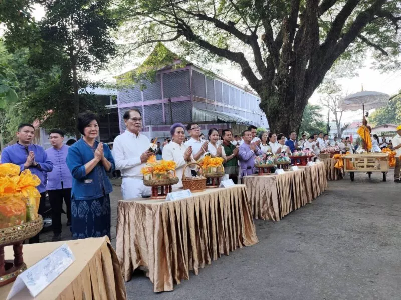 โดยมี ประชาชนและนักท่องเที่ยวเข้าร่วมเป็นจำนวนมาก บรรยากาศเต็มไปด้วยความศรัทธาและความปลื้มปีติ พร้อมร่วมกันทำบุญข้าวสารอาหารแห้ง เพื่อความเป็นสิริมงคล และส่งเสริมภาพลักษณ์จังหวัดเชียงราย ในฐานะแหล่งวัฒนธรรมสำคัญของภาคเหนือ