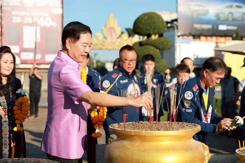 ในการนี้ นายกเทศมนตรีนครเชียงรายกล่าวถึงความร่วมมือกับประเทศจีน โดยเฉพาะด้านการศึกษาที่มีการแลกเปลี่ยน รวมทั้งเทศบาลนครเชียงรายได้จัดงาน วัฒนธรรมสัมพันธ์ลุ่มน้ำโขงมาอย่างต่อเนื่อง อีกทั้งให้ความสำคัญในการพัฒนานครเชียงราย ให้เป็น ประตูเศรษฐกิจและการท่องเที่ยวระหว่างประเทศ โดยใช้ถนน R3A เป็นหัวใจสำคัญด้านเศรษฐกิจ เชียงของ จังหวัดเชียงราย – สปป.ลาว – สาธารณรัฐประชาชนจีน (มณฑลยูนนาน) พร้อมนำคณะขบวนแรลลี่คาราวานมิตรภาพไทย–จีนถวายความเคารพแด่องค์พ่อขุนเม็งรายมหาราช เพื่อความเป็นสิริมงคล
