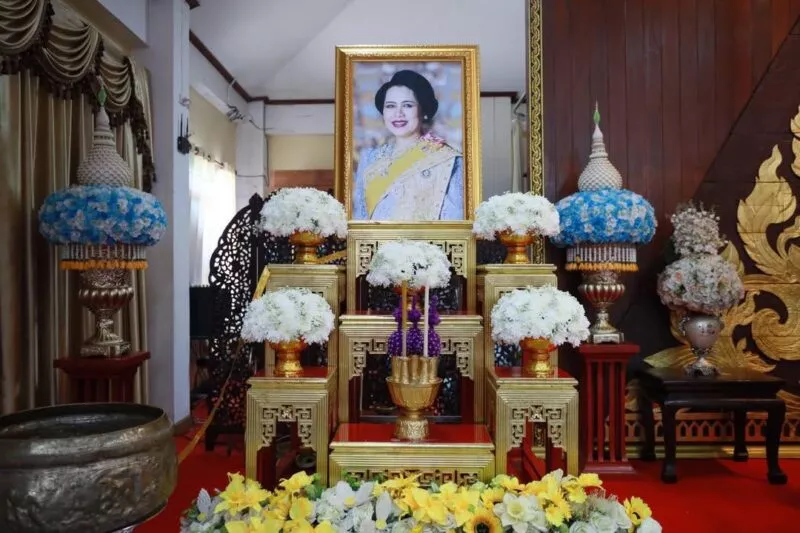 ในการนี้ ผู้ว่าราชการจังหวัดเชียงรายและข้าราชการชั้นผู้ใหญ่ได้ถวายน้ำสรง หน้าพระฉายาลักษณ์ ร่วมพระพิธีธรรมสวดพระอภิธรรม จากพระสงฆ์จำนวน 4 รูป และลงนามแสดงความไว้อาลัย สมเด็จพระนางเจ้าสิริกิติ์พระบรมราชินีนาถ พระบรมราชชนนีพันปีหลวง ก่อนให้ประชาชนที่มาร่วมพิธีได้ทยอยถวายน้ำสรง หน้าพระฉายาลักษณ์และลงนามแสดงความไว้อาลัยตามลำดับ