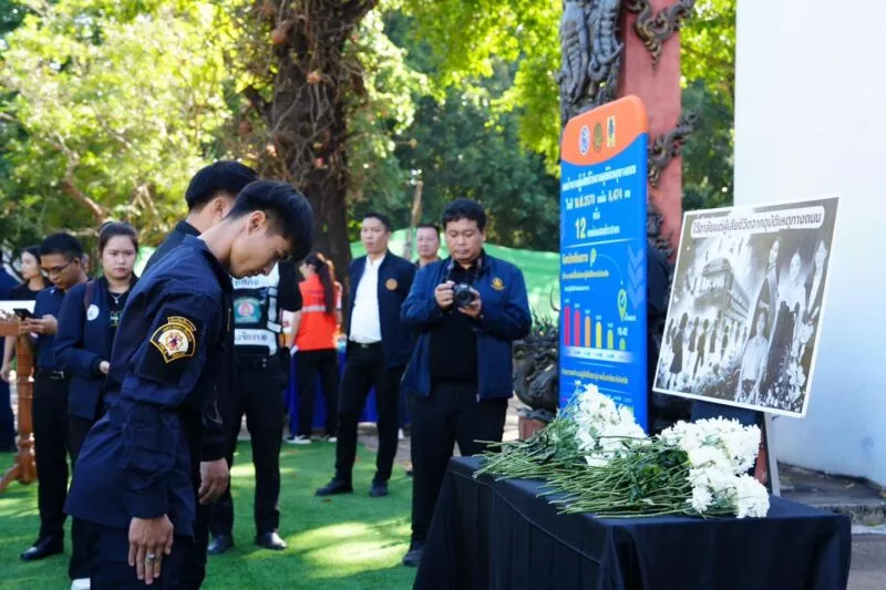 เทศบาลนครเชียงราย โดย นายวันชัย จงสุทธานามณี นายกเทศมนตรีนครเชียงราย มอบหมายให้ นายภาธร์ รังษีกุลพิพัฒน์ รองนายกเทศมนตรีนครเชียงราย นางนัยนา อินทจักร์ ผอ.กองการเจ้าหน้าที่ นายประพันธ์ ช่างแก้ว หน.ฝ่ายปกครอง น.ส.นภาพร จันทร์แก้ว หัวหน้าฝ่ายอำนวยการ สำนักปลัด และเจ้าหน้าที่อปพร.เทศบาลนครเชียงราย ร่วมแสดงความอาลัยและระลึกถึงผู้สูญเสีย พร้อมทั้งมุ่งมั่นสานต่อมาตรการสร้างความปลอดภัยทางถนน ลดอุบัติเหตุ และดูแลประชาชนอย่างเต็มกำลัง