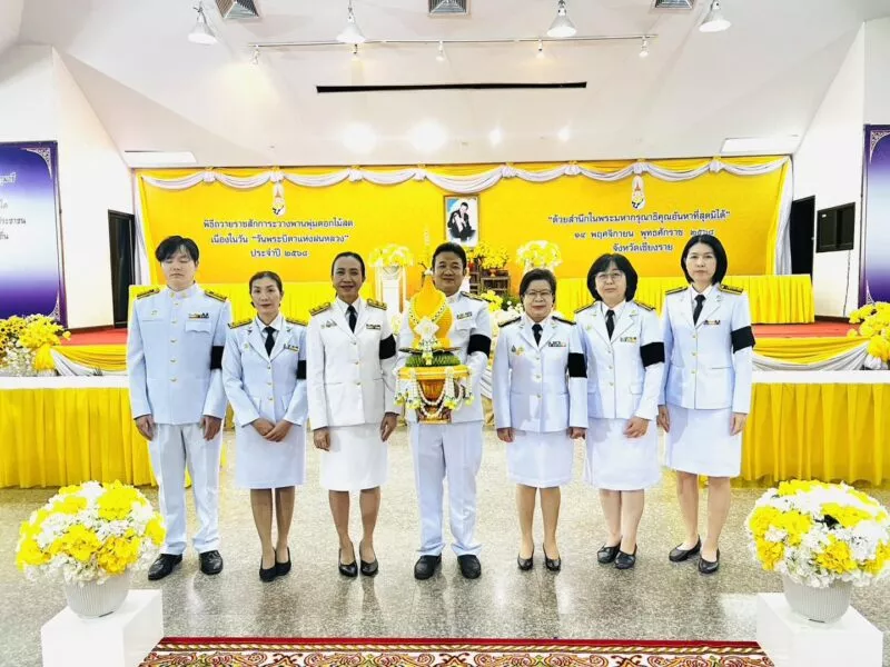โดยมี นายประเสริฐ จิตต์พลีชีพ รองผู้ว่าราชการจังหวัดเชียงราย เป็นประธาน พิธีในครั้งนี้จัดขึ้นอย่างสง่างามและสมพระเกียรติ โดยมีหัวหน้าส่วนราชการ หน่วยงานภาครัฐ ภาคเอกชน และจิตอาสาเข้าร่วมอย่างพร้อมเพรียง แสดงออกถึงความจงรักภักดีและความสำนึกในพระมหากรุณาธิคุณอันหาที่สุดมิได้
