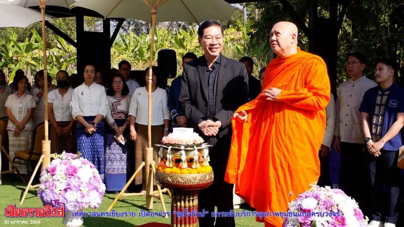 วันที่ 30 มกราคม 2569 พระไพศาลประชาทร วิ. เจ้าอาวาสวัดห้วยปลากั้ง จังหวัดเชียงราย นายวันชัย จงสุทธานามณี นายกเทศมนตรีนครเชียงราย เป็นประธานพิธีทำบุญเปิดอาคาร “สุขใจรักษ์” ณ ศูนย์บริการสาธารณสุขเทศบาล 3 สันตาลเหลือง เพื่อยกระดับคุณภาพชีวิตประชาชนตามนโยบาย “เชียงรายเมืองแห่งสุขภาพ” มุ่งพัฒนาระบบสาธารณสุขให้ทันสมัย ครอบคลุม และเข้าถึงประชาชนทุกกลุ่ม