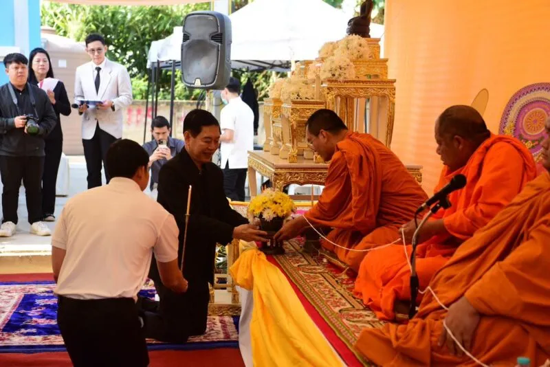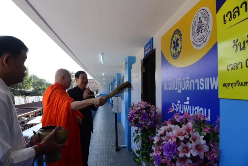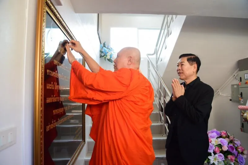 โดยได้รับความเมตตาจาก พระไพศาลประชาทร วิ. (พระอาจารย์พบโชค ติสฺสวํโส) เจ้าอาวาสวัดห้วยปลากั้ง จังหวัดเชียงราย เป็นประธานฝ่ายสงฆ์ พร้อมด้วย พระครูไพศาลธรรมทัศน์ เจ้าคณะตำบลริมกก เขต 1 เจ้าอาวาสวัดสันทรายใหม่ พระอธิการการันต์ ฐานวีโร เจ้าอาวาสวัดสักกะวัน พระครูสุคนธ์ ศีลสัมปัน เจ้าอาวาสวัดสันตาลเหลือง และคณะสงฆ์จังหวัดเชียงราย ร่วมประกอบพิธีสวดเจริญพระพุทธมนต์ เพื่อความเป็นสิริมงคลแก่อาคาร “สุขใจรักษ์”