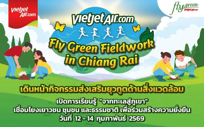 นอกจากนี้ เวียตเจ็ทไทยแลนด์ยังเปิดโอกาสให้ชุมชนมีส่วนร่วม ผ่านการเชิญสมาชิก Vietjet FUN Rewards ชาวเชียงรายเข้าร่วมกิจกรรม “Fly Green Fieldwork in Chiang Rai” เพื่อเรียนรู้แนวทางอนุรักษ์และร่วมสร้างการเปลี่ยนแปลงด้านสิ่งแวดล้อม โดยจะจัดขึ้นในวันศุกร์ที่ 13 กุมภาพันธ์ 2569 เวลา 08.00–16.00 น. ผู้โชคดีจำนวน 10 ท่าน จะได้รับบัตรโดยสารไป-กลับภายในประเทศ มูลค่า 10,600 บาทต่อรางวัล รายละเอียดเพิ่มเติมสามารถดูได้ที่ Facebook Vietjet Thailand