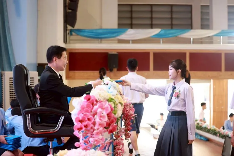 โดยได้รับเกียรติจาก นายวันชัย จงสุทธานามณี นายกเทศมนตรีนครเชียงราย เป็นประธานในพิธี พร้อมมอบโอวาทและแสดงความยินดีกับนักเรียนผู้สำเร็จการศึกษา ท่ามกลางบรรยากาศแห่งความภาคภูมิใจ ความซาบซึ้ง และความผูกพันของคณะผู้บริหาร คณะครู ผู้ปกครอง และนักเรียน