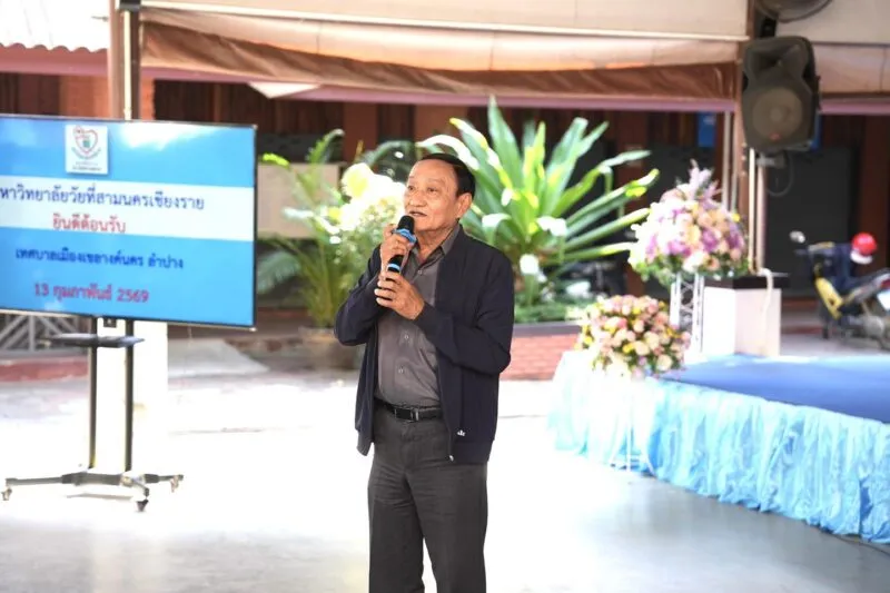 วันที่ 13 กุมภาพันธ์ 2569 เทศบาลนครเชียงรายโดย นายวันชัย จงสุทธานามณี นายกเทศมนตรีนครเชียงราย มอบหมายให้ นายณรงค์ศักดิ์ เตือนสกุล เลขานุการนายกเทศมนตรีนครเชียงราย พร้อมด้วย นายพินิจ ราชตา ผู้อำนวยการมหาวิทยาลัยวัยที่ 3 นครเชียงราย ให้การต้อนรับนายไพฑูรย์ โพธิ์ทอง นายกเทศมนตรีเมืองเขลางค์นคร พร้อมด้วยคณะศึกษาดูงานจากเทศบาลเมืองเขลางค์นคร จังหวัดลำปาง