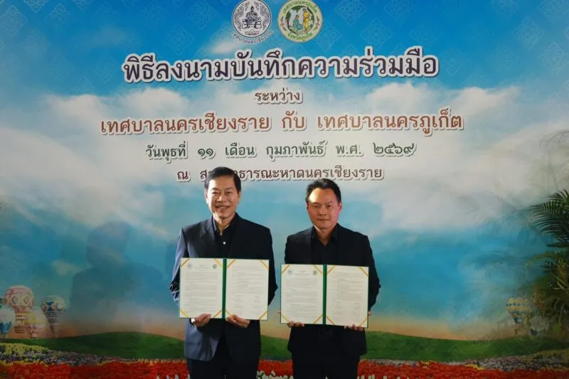 เทศบาลนครเชียงราย และ เทศบาลนครภูเก็ต ลงนามข้อตกลงความร่วมมือ เพื่อสร้างเครือข่ายและความร่วมมือในการพัฒนาเมืองอย่างยั่งยืน