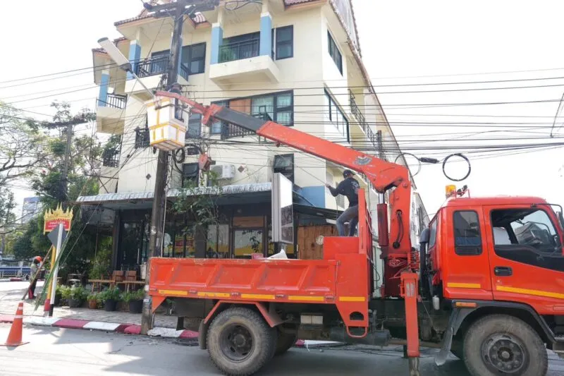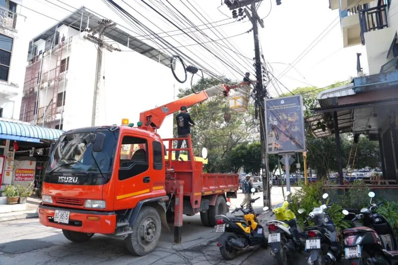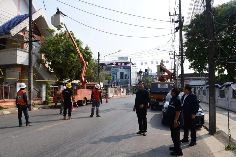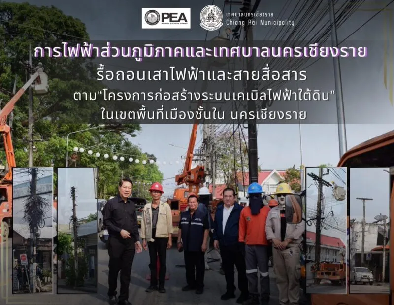 การไฟฟ้าส่วนภูมิภาคและเทศบาลนครเชียงราย ดำเนินการรื้อถอนสายสื่อสาร รื้อสายไฟ และตัดเสาไฟฟ้าออก “ในโครงการก่อสร้างระบบเคเบิลไฟฟ้าใต้ดิน” ในเขตพื้นที่เมืองชั้นใน มุ่งปรับปรุงภูมิทัศน์เมืองให้สวยงาม เป็นระเบียบ เพิ่มความปลอดภัย และยกระดับคุณภาพชีวิตประชาชน