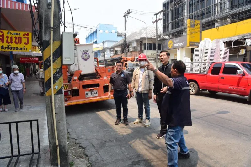 วันอาทิตย์ที่ 29 มีนาคม 2569 นายวันชัย จงสุทธานามณี นายเทศมนตรีนครเชียงราย นายธเนศ โกมลธง รองนายกเทศมนตรีนครเชียงราย นายประพันธ์ ช่างแก้ว เลขานุการเทศบาลนครเชียงราย #ลงพื้นที่ถนนธนาลัย (ตั้งแต่สี่แยกสุริวงศ์ ถึงแยก ธนาคารออมสิน) ติดตาม “โครงการรื้อถอนสายไฟฟ้าตัดเสาไฟฟ้าและสายสื่อสารในเขตเมืองชั้นใน พร้อมพัฒนาระบบเคเบิลไฟฟ้าใต้ดิน”ในการปรับปรุงภูมิทัศน์เมืองให้สวยงาม เป็นระเบียบ และเพิ่มความปลอดภัยให้กับประชาชน