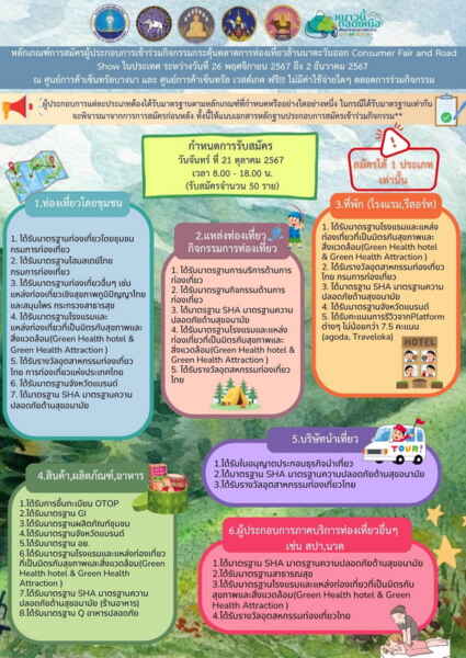 เชิญชวน ผู้ประกอบการด้านการท่องเที่ยว 6 ประเภท ในกลุ่มจังหวัดภาคเหนือตอนบน 2 (เชียงราย พะเยา แพร่ น่าน)