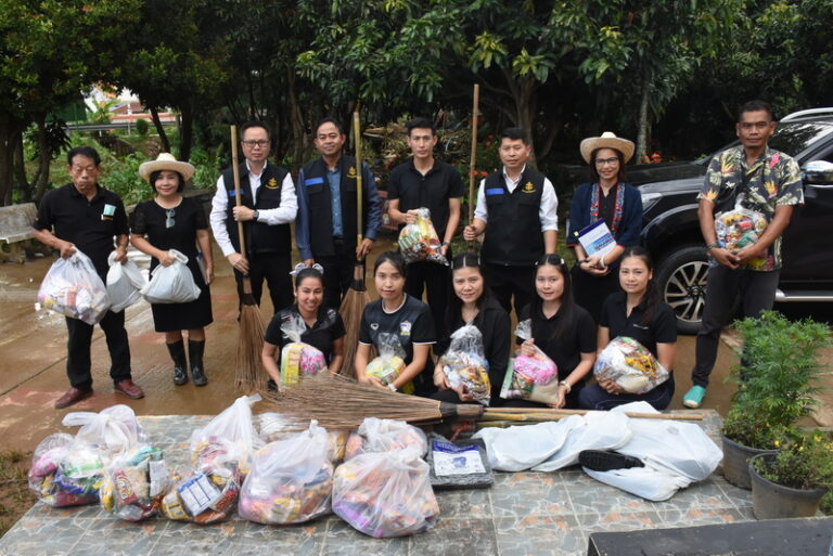 มอบข้าวกล่องน้ำดื่มและถุงยังชีพมอบให้ผู้ประสบภัยหลังน้ำลดและบางบ้านยังได้รับผลกระทบรอบสอง