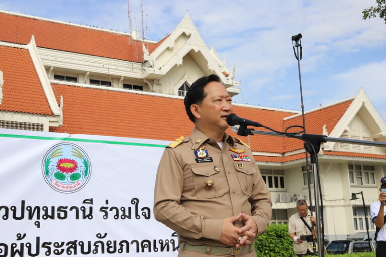 ผู้ว่าฯ ปทุมธานี ปล่อยขบวนรถสิ่งของบริจาค นำน้ำใจชาวปทุมธานี สู่พี่น้องภาคเหนือ
