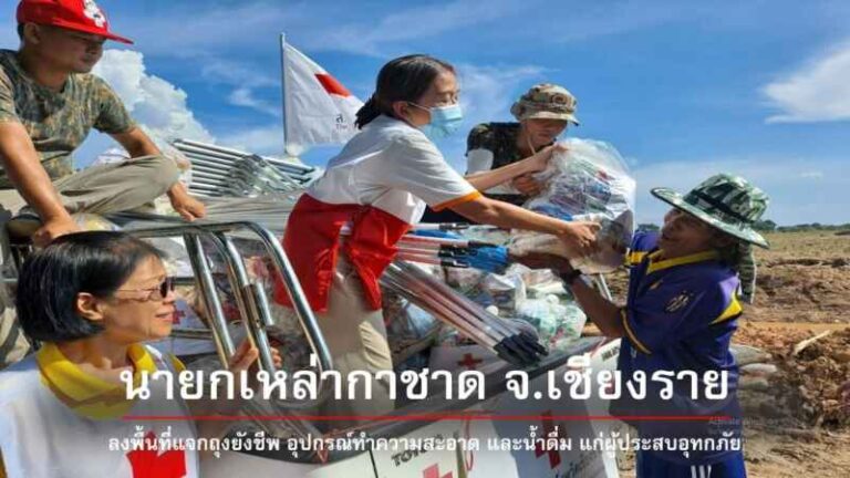 เหล่ากาชาดจังหวัดเชียงราย ลงพื้นที่มอบถุงยังชีพให้แก่ผู้ประสบอุทกภัย
