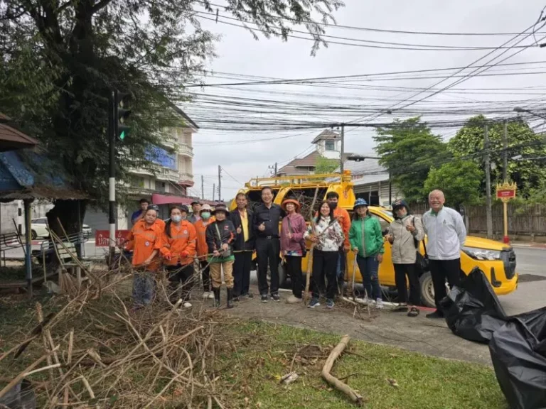 นายกเทศมนตรีและเจ้าหน้าที่เทศบาลนครเชียงรายออกสำรวจพื้นที่ที่ได้รับความเสียหายและเร่งดำเนินการช่วยเหลือ