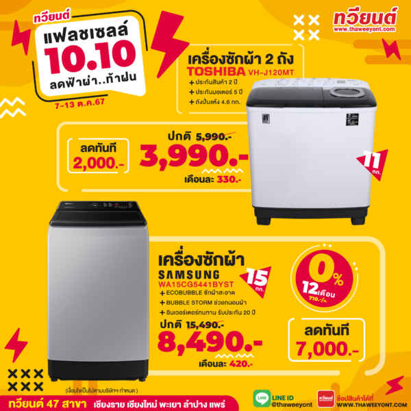 ลดเด้งเด้ง! กลางเดือน ช้อปเครื่องใช้ไฟฟ้าราคาพิเศษ..ที่ทวียนต์เท่านั้น