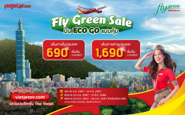 เวียตเจ็ทไทยแลนด์ฉลองเที่ยวบิน SAF ออกโปรฯ ‘Fly Green Sale’ ตั๋วเริ่มต้น 690 บาท