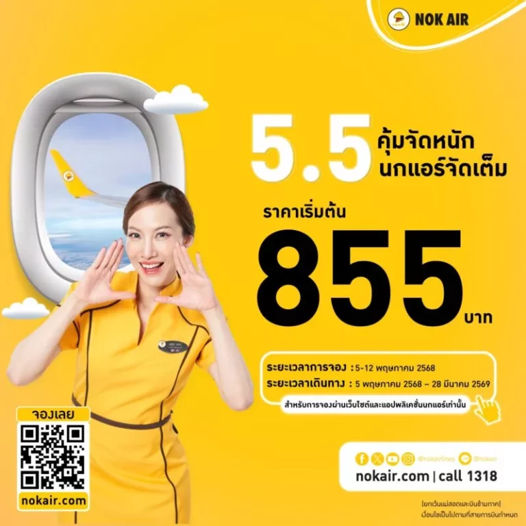 5.5 นี้…คุ้มจนต้องร้อง wow❗ นกแอร์จัดให้! เสิร์ฟความคุ้ม พร้อมรอยยิ้มทุกเที่ยวบิน
